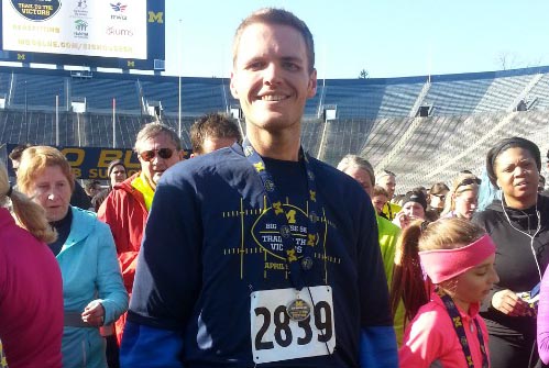 Com a mudança de hábitos, o norte-americano conseguiu neste domingo correr sua primeira prova de longa duração. No final de semana, completou a Detroit Chevy Dealers International, de 21 km, em 2h53min. Na disputa, arrecadou dinheiro com patrocinadores, que doou para a pesquisa da distrofia miotônica, a mesma doença degenerativa da qual sofre sua amiga Jackie Eastham.