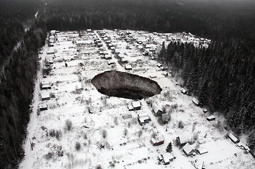 Um buraco de 50 metros de diâmetro engoliu várias casas de um pequeno povoado perto da cidade russa de Solikamsk, em Urais, segundo vários testemunhos de moradores dessa região mineira.