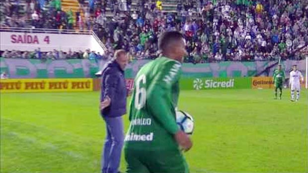 A FIFA, com seus inventos, criou uma área técnica próximo à linha lateral, onde é permitido a permanência do técnico. Na foto acima vimos Mano Menezes, técnico do Cruzeiro, obstruindo uma cobrança de lateral pelo jogador chapecoense. O pior, entretanto, não foi a atitude do treinador e sim suas declarações quando afirma que o que fez foi proposital com a intenção de prejudicar a cobrança.