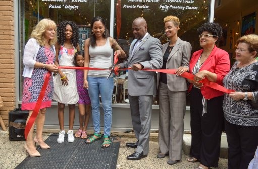 O Prefeito Ras J. Baraka, a Newark Comunidade Econômica Development Corporation através de seu presidente e CEO, Aisha Glover, e Celeste Banks, cortaram ontem a fita para abrir o curso que recebeu o nome de Paleta do Pintor, localizado no números 01 a 09 da 7th Avenue na área central de Newark.