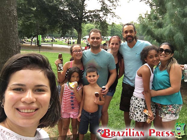 Brazilians United: o casal gaúcho Wagner e Tais, a curitibana Joice, a fashionista maranhese Irlene, o film critic Roger Costa e as gurizada reuniram-se para um saboroso Picnic no espaçoso Great Lawn no Central Park.