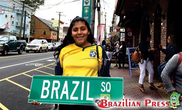 A jovem Alice de Souza marcando presença neste marco histórico, inauguração oficial do Brasil Square em Newark, NJ.