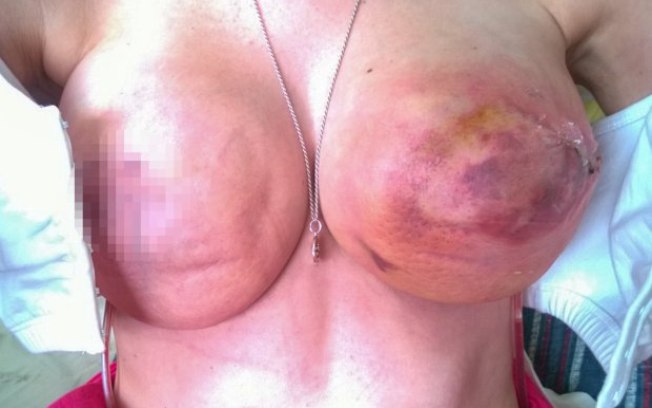 Seu tecido mamário foi completamente destruído em algumas partes, e seu mamilo esquerdo chegou a cair durante uma mudança de curativo.
