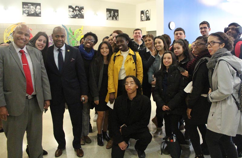 Newark, NJ – New Interim Superintendent A. Robert Gregory joined Newark Mayor Ras J. Baraka, members of the Newark Board of Education, and students at a press conference at Science Park High School this morning at the ceremony to formally transfer control of the Newark Public Schools back to the city, ending 23 years of state control. Interim Superintendent Gregory officially took the helm of New Jersey’s largest school district at the ceremony. The school is located at 260 Norfolk Street.