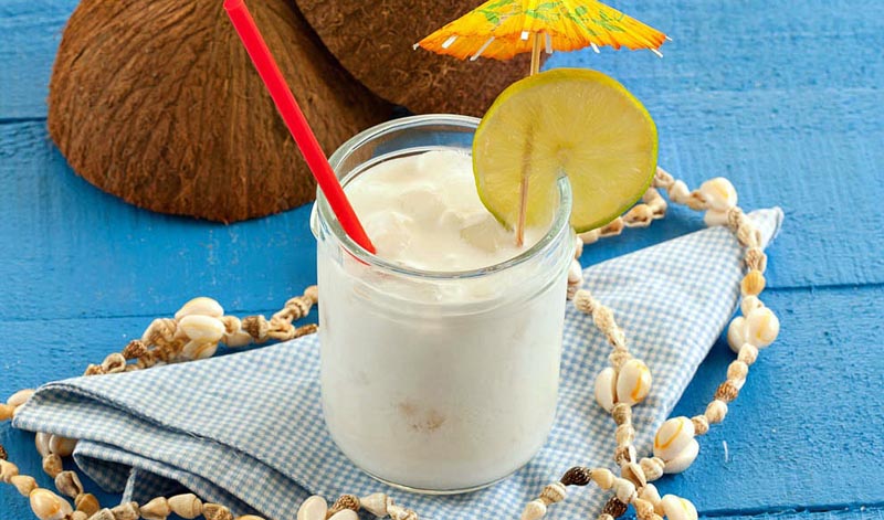O drinque caribenho leva polpa de coco, leite de coco, leite condensado, vodka e é finalizado com canela e coco ralado.