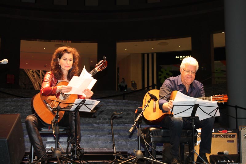 RCosta- Premiada com o Grammy, compositora, instrutora e uma das maiores feras femininas no violão, a guitarrista Sharon Isbin realizou show emocionante sábado passado, dia 19 de maio, como parte do New York Guitar Festival no Brookfield Place. No repertório, uma homenagem aos ritmos espanhóis com composições de Albéniz, Granados, Tárrega e Vincente Amigo. O carioca Romero Lubambo também apresentou-se no palco do Festival, tocando ao lado de Sharon. Romero timber é vencedor do Grammy Latino. O público ficou maravilhado com a sensibilidade, técnica e química inspiradora da dupla.
