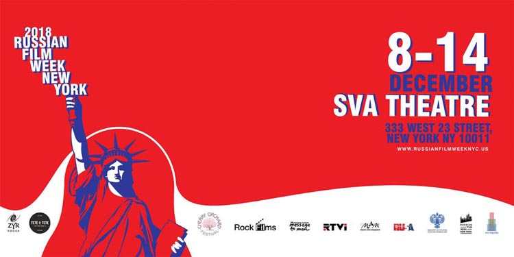 RC- Organizado pela Cherry Orchard Festival (USA) e Rock Studio Films (Russia) a edicao 2018 Russian Film Week in New York acontece de 8 a 14 de Dezembro no SVA Theater em Manhattan New York City. Apresentando producoes consagradas variadas, filmes populares comercialmente e producoes independentes, o evento demonstra o talento e vitalidade da nova safra cinematografica realizada na Russia. Artistas renomados, astros e estrelas, bem como diretores, estarao presentes no SVA Theater (333 W 23rd Street, entre 8th e 9th Avenues) para discutirem cada projeto individualmente.