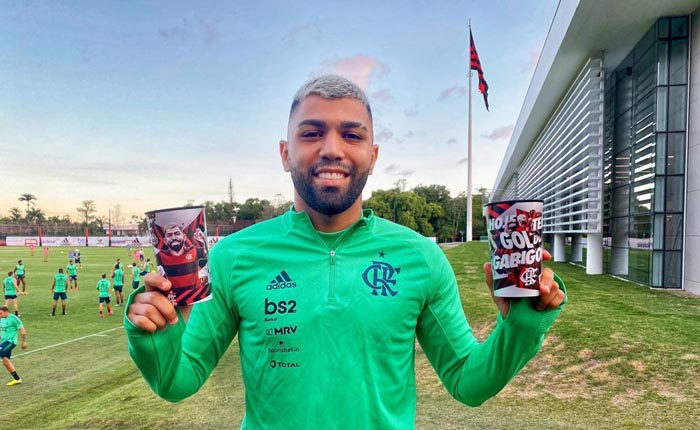 Quarta-feira terá copo do Gabigol. O Flamengo fechou uma parceria com o atacante para vender um copo colecionável inspirado no jogador, com a frase “Hoje tem gol do Gabigol”. O produto será comercializado na partida contra o Barcelona de Guayaquil, no Maracanã, pela LIbertadores, e custará R$ 20. O copo poderá ser adquirido nos quiosques oficiais dentro do Maracanã e, posteriormente, em todas as lojas do clube. A produção fica a cargo da licenciada TSC ídolos.