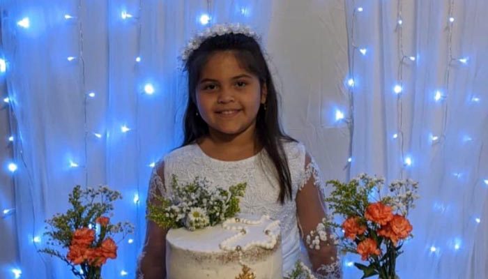 A pequena Gabriella fez sua primeira comunhão e isso encheu o coração de alegria da mamãe coruja Andrea Bail. Filhos são a herança do Senhor.