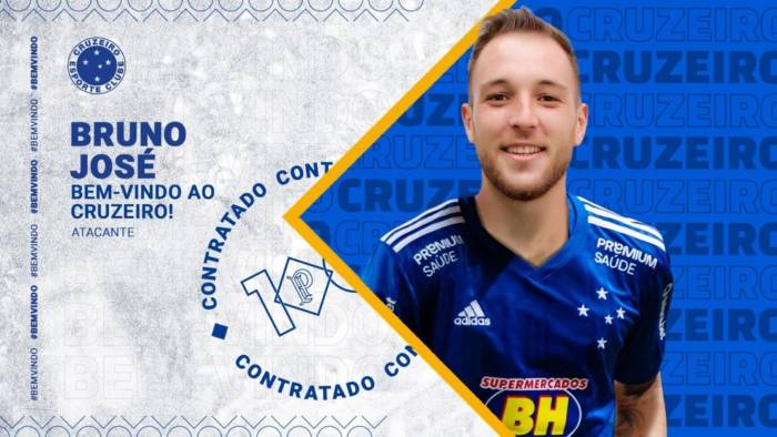 O Cruzeiro anunciou, nesta quarta-feira, a contratação do atacante Bruno José. É o sexto reforço confirmado para a temporada 2021. Ele assina contrato por quatro temporadas e passa a ter a maior parte dos direitos econômicos vinculados ao clube mineiro.
