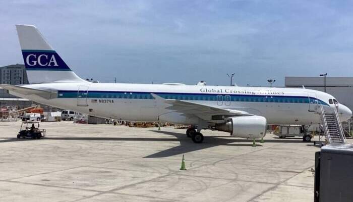 O avião alocado para o serviço é o Airbus A320 registrado sob a matrícula N837VA, da companhia aérea norte-americana Global Crossing Airlines (ou GlobalX). Ele possui uma pintura diferenciada com faixas azuis e o nome completo da empresa, além das iniciais GCA na cauda, em vez do grande “GlobalX” estampado em outros aviões de sua frota.