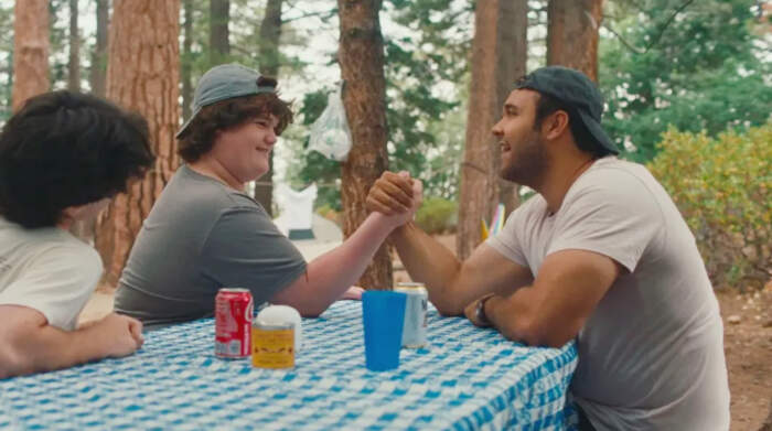 He delicately follows the transitions of Jamie, a 14-year-old chubby kid who is about to enter maturity. Getting ready to go camping with his brother and favorite cousin, he clearly demonstrates jealousy when he learns someone else is coming for the trip. That’s Dan, his cousin’s “uninvited” boyfriend. Turns out the initial feeling of discomfort becomes a quest for approval and connection. Jamie develops an unexpected crush on the much older bear-type guy, gradually leaving marks of his fixation. The same type of transition is also observed through his sense of shame; as they arrive at the camping site, they go on for a swim. Jamie doesn’t take his shirt off, reflecting on his lack of confidence and rejection to his own body shape. Later on in the narrative, after he was forced to face and confront his own dilemmas, we see him going in again, but this time he proudly removes his shirt, setting himself free from guilty.