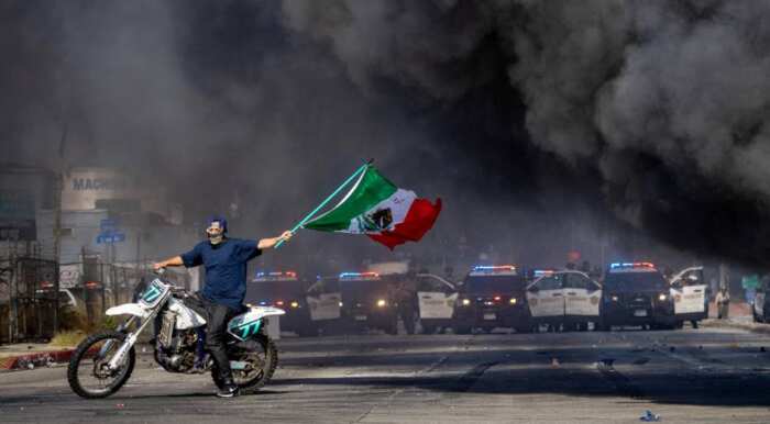 “O governo federal está assumindo o controle da Guarda Nacional da Califórnia e mobilizando 2.000 soldados em Los Angeles — não porque haja escassez de agentes da lei, mas porque querem um espetáculo”, tuitou Newsom. “Não deem um espetáculo a eles. Nunca usem violência. Falem pacificamente.” Trump assinou um memorando mobilizando os guardas enquanto manifestações contra as operações do ICE continuavam a agitar o estado, disse a secretária de imprensa da Casa Branca, Karoline Leavitt, em um comunicado na noite de sábado.